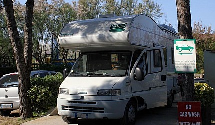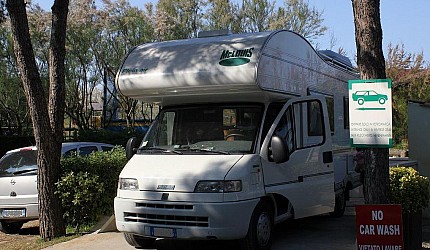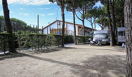 Non distanti si trovano il camper service e il wc chimico. La piazzola stessa è però dotata dellimpianto per il carico e lo scarico delle acque bianche/grigie. Inoltre è fornita con 10 Amper di corrente e dispone dellattacco TV-Sat. Lutilizzo della piscina è incluso nel costo della piazzola e vi è la possibilità di parcheggiare all'interno della piazzola anche un'auto supplementare (extra rispetto alle tariffe da listino). E consigliata la prenotazione anticipata, dal momento che le piazzole tipo C sono solamente venti e sono molto richieste.