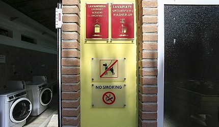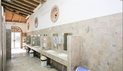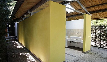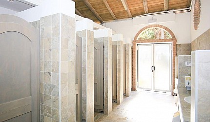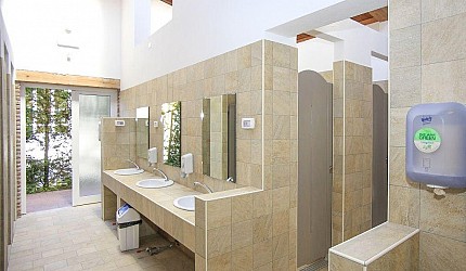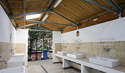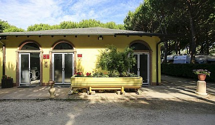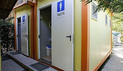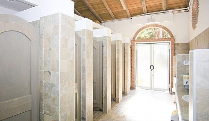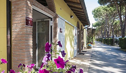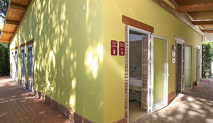 In prossimità delle piazzole tipo B si trovano due complessi di servizi recentemente ristrutturati, completi anche con lavanderia a gettoni, lavelli per stoviglie, baby room e un totale di quattordici bagni privati.