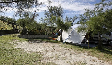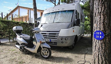 Dal momento che le piazzole non sono tra le più spaziose, sono consigliate a chi soggiorna in tenda o con van e camper di piccole dimensioni (massimo 7 m). Sono provviste di tutte le dotazioni (6A, carico e scarico delle acque grigie, e colonnina per il satellitare) e la loro tariffa include anche lingresso in piscina.