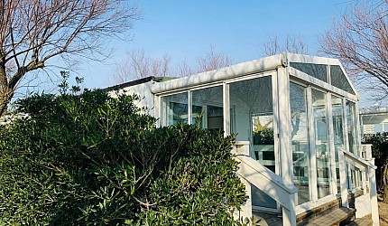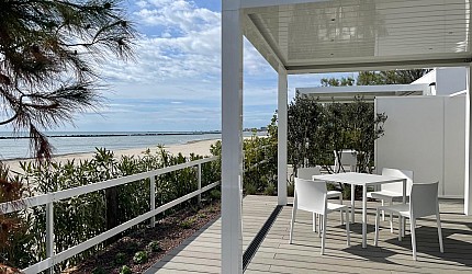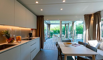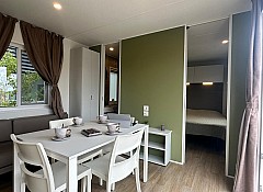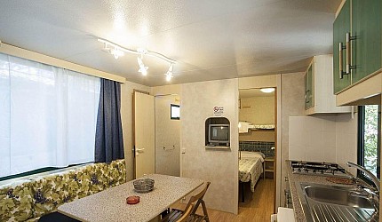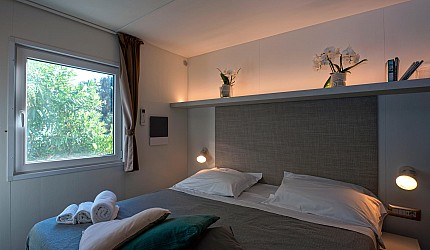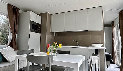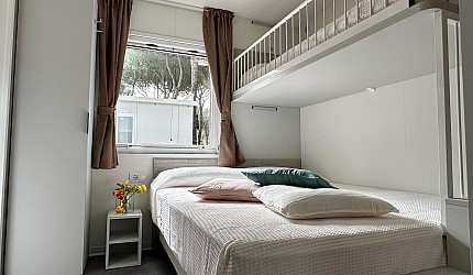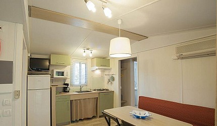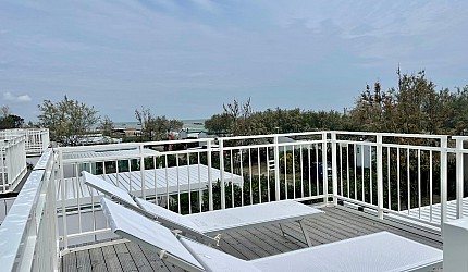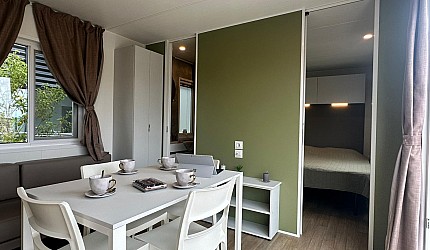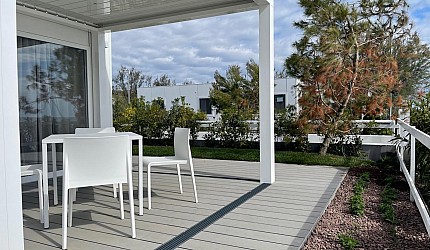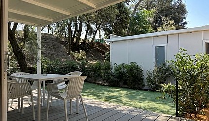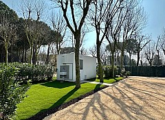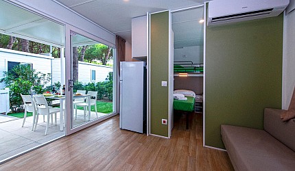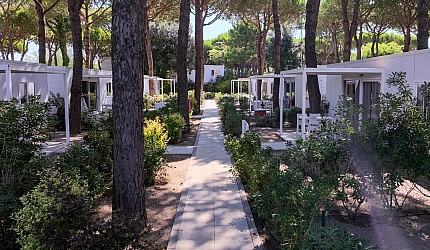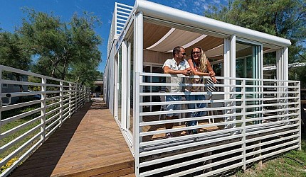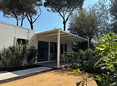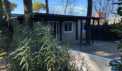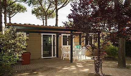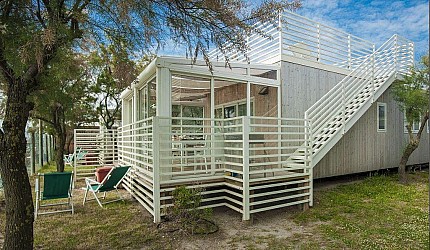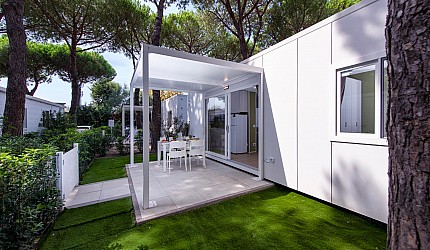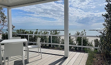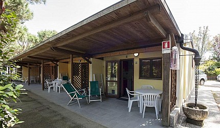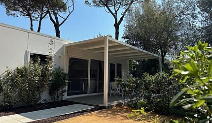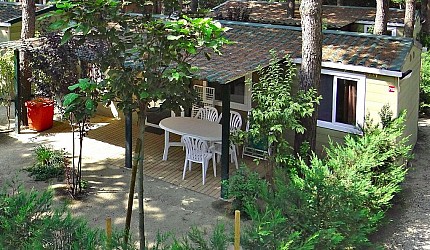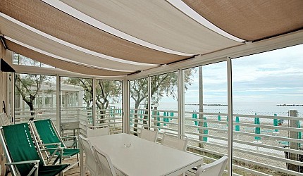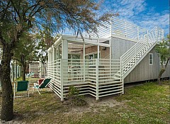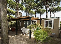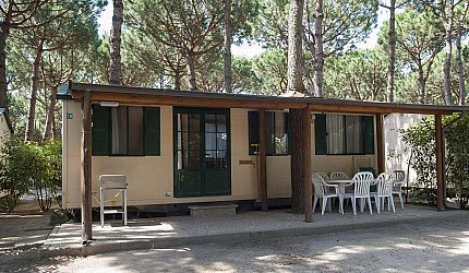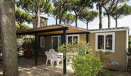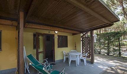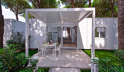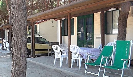 La veranda esterna con tavolo e sedie completa la dotazione dell'alloggio. E' possibile parcheggiare l'auto in prossimità della propria abitazione, al di sotto della pineta, che garantisce ombra durante gran parte della giornata. Le Tiziano Superior sono recintate e adatta per chi ha animali.