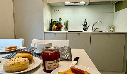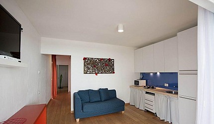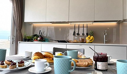 Il salotto con angolo cottura è comodo, spazioso e vista mare ed è completamente attrezzato per garantire ai nostri ospiti il massimo dell'autonomia e della praticità, proprio come a casa.