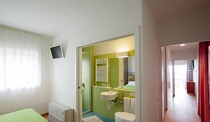 Le Tintoretto sono disposti di una camera matrimoniale, una camera con tre letti singoli ed un divano letto), due bagni di cui uno interamente accessibile a persone con difficoltà motorie, un salotto con angolo cottura ed una spaziosa veranda.
