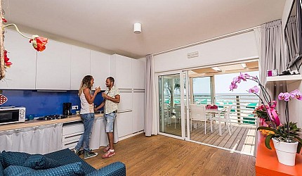Le nuove case vacanze Michelangelo Suite sono state installate nella primavera del 2021. Si collocano in un'oasi di tranquillità, direttamente sulla spiaggia, a pochi passi dal bagnasciuga e raggruppate in un piccolo borgo composto da undici unità.