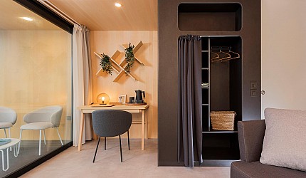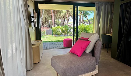NOVITA' 2024 - La Botticelli Suite è pensata per una vacanza di coppia all'insegna del relax e del benessere. Curata nei minimi dettagli, è una stanza di design immersa nel verde della pineta, a pochi passi dal mare, circondata da un rigoglioso prato inglese che la rende incantevole. Un nuovo modo di immaginare la vacanza, coniugando il piacere di un soggiorno all'aria aperta con la comodità dei servizi alberghieri; chi sceglie la Botticelli Suite non cambia più.