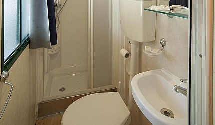 Le piazzole tipo D sono le più grandi del villaggio, nonché le più accessoriate. Sono fornite infatti con 10 Amper di corrente e dispongono di un bagno privato con wc, doccia e lavandino direttamente in piazzola.