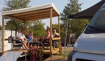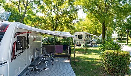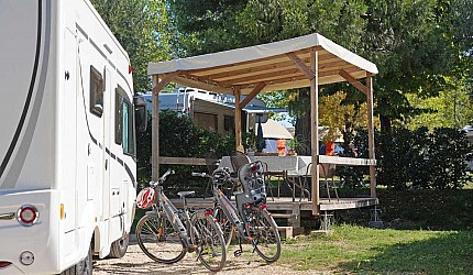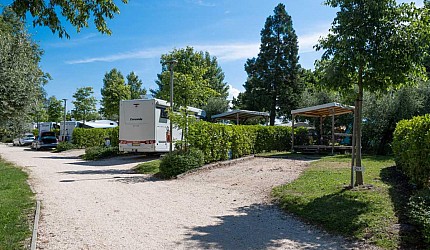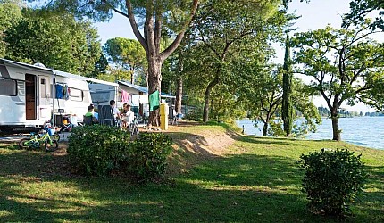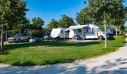 Di dimensioni molto generose, trasmettono una piacevole sensazione di spazio, con fondo erboso, distribuite tra gli olivi tipici del Garda, con acqua, scarico e prese elettriche CEE da 10 a 16 Amp. Dotate di servizi privati con wc, doccia , lavabo e lavello e lavapiatti esterno. Ideali per tende, camper e caravan di grandi dimensioni o veicoli ricreazionali.