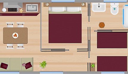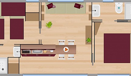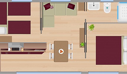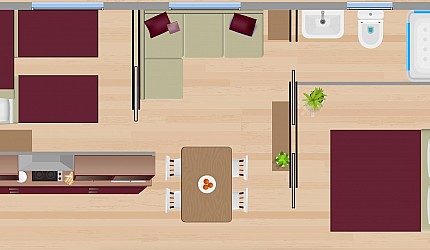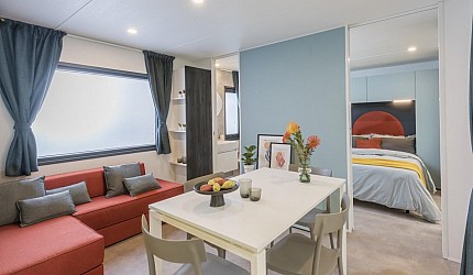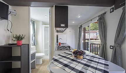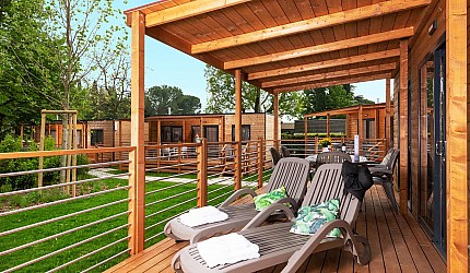 Le nostre case mobile top di gamma, naturale evoluzione delle Olive Grove 4.3 ricche di dettagli inediti e spazi abitativi generosi, con terrazza coperta a tutta lunghezza, centrali e in prossimità della piscina.