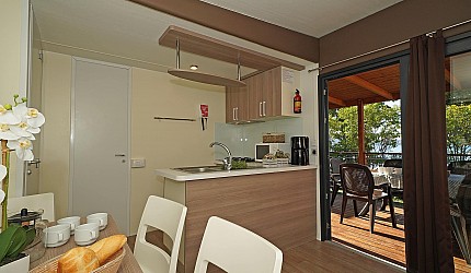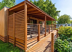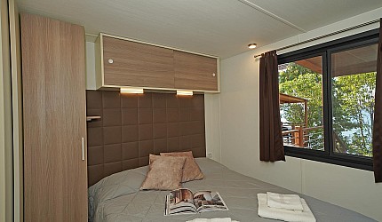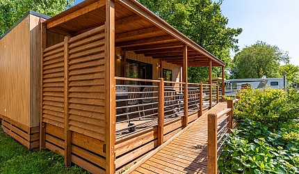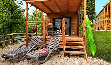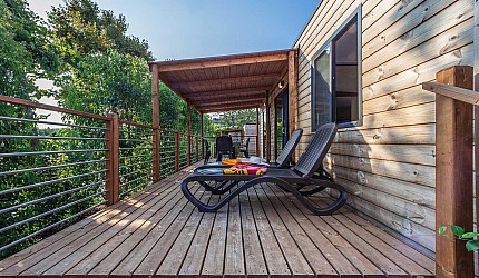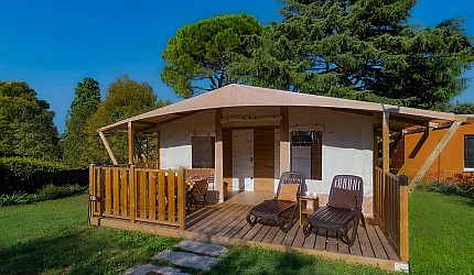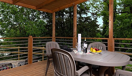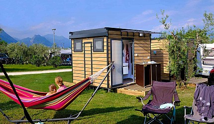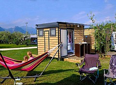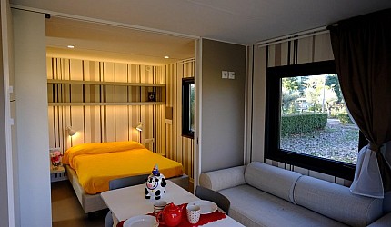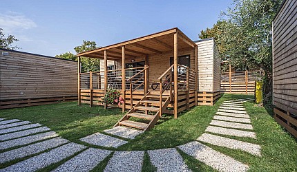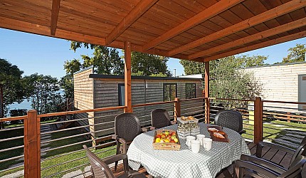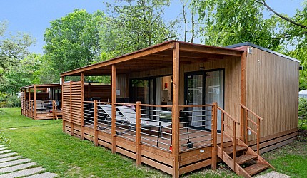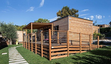 Case mobili progettate e realizzate in Italia in esclusiva per il nostro resort, pensate per la coppia, con rifiniture di pregio, in posizione elevata con vista lago.