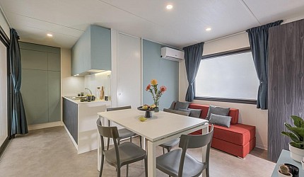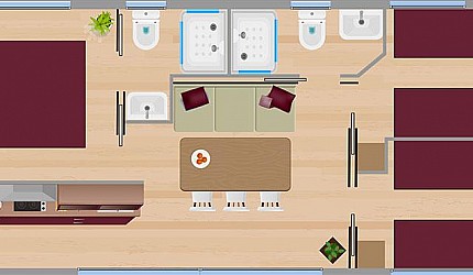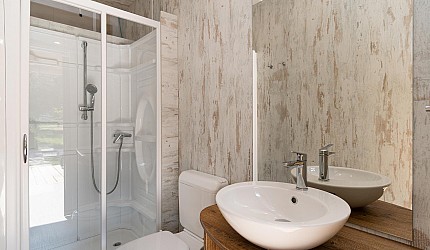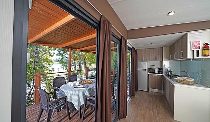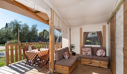 Unità di design, progettate e realizzate in Italia, con terrazza a tutta lunghezza, progettate per ospitare turisti con disabilità e famiglie fino a cinque persone, con accesso diretto alla piscina principale.
