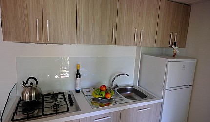 Nuove unità abitative situate vicino alla spiaggia ed una in collina, ideali per 5 persone, 1 camera matrimoniale ed 1 camera con 3 letti singoli, zona soggiorno, divano, angolo cottura, bagno con doccia/wc, aria condizionata e riscaldamento, terrazza coperta con mobili da giardino.