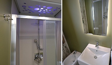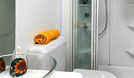 Ideali per 5 persone, ampio spazio interno, una camera matrimoniale e una camera con tre letti singoli, zona soggiorno, TV, angolo cottura, lavastoviglie, microonde, bagno con doccia (con cromoterapia) /wc, cassaforte, aria condizionata/riscaldamento e terrazza coperta con mobili da giardino.