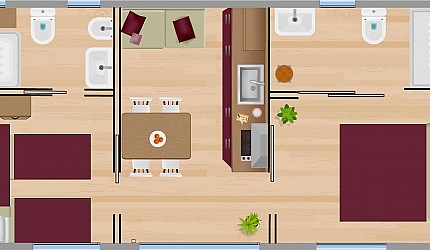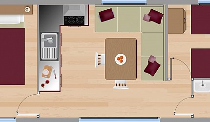 Case mobili progettate e realizzate in Italia in esclusiva per il nostro resort, pensate per la coppia, con rifiniture di pregio, in...
