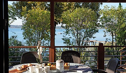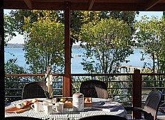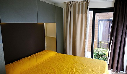 Unità abitative fronte lago, ideali per 5 persone, ampio spazio interno, 1 camera matrimoniale ed 1 camera con 3 letti singoli, zona soggiorno, TV, angolo cottura, lavastoviglie, microonde, bagno con doccia (con cromoterapia) /wc, cassaforte, aria condizionata e riscaldamento, terrazza coperta con mobili da giardino.