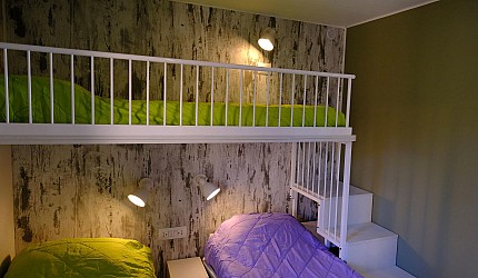 Sistemazione ideale per 5 persone, con camera matrimoniale e camera con tre letti singoli, zona soggiorno con angolo cottura, bagno...