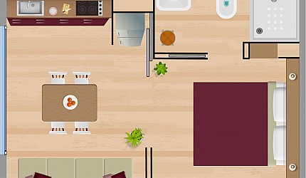 Ideali per 5 persone, 2 camere da letto, zona soggiorno con divano, angolo cottura, bagno con doccia/wc, aria condizionata e riscaldamento, terrazza coperta con mobili da giardino.