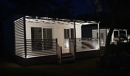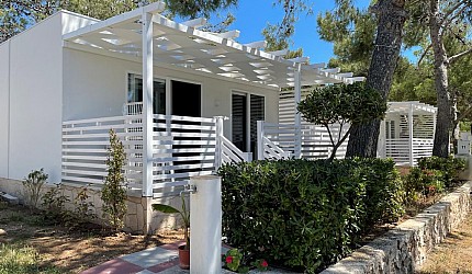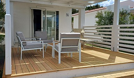 CASA MOBILE NUOVA VISTA MARE: mq 28 composta da soggiorno con cucina (caffetteria esclusa), divano letto matrimoniale, camera matrimoniale, dotata di aria condizionata, tv, cassaforte, verandino esterno.