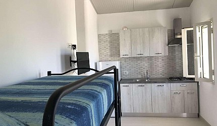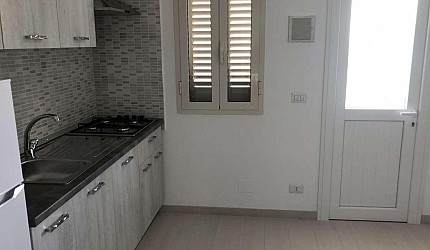 Bilocale in muratura completamente ristrutturato, dai 2 ai 4 posti letto, soggiorno con due letti singoli, angolo cottura, camera matrimoniale con aria condizionata, bagno con box doccia, veranda esterna per mangiar fuori.