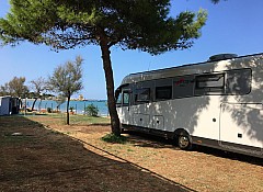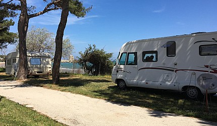 Le piazzole 1a fila zona A sono situate fronte mare dotate di allaccio alla corrente elettrica di 10 ampere ombreggiate dove presente solo con alberi, non sono presenti ombreggianti artificiali, accesso a pochi metri per la spiaggia, nella zona A è presente la zona Servizi bagni /docce e lavatrice a gettone e Camper Service.