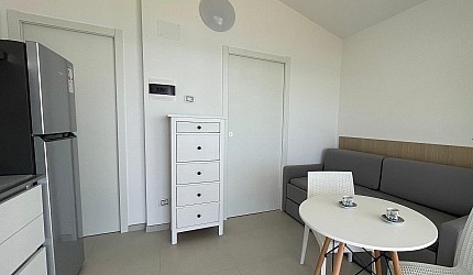 Posti a 30 mt dal mare: patio esterno attrezzato con divanetti e tavolo per mangiar fuori, ingresso soggiorno con aria condizionata,...