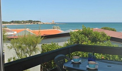 TRILOCALE VILLINO 4/5 POSTI: in muratura di mq 45 + 15 di veranda. A 30 metri dal mare. Ingresso soggiorno con cucina (caffetteria...