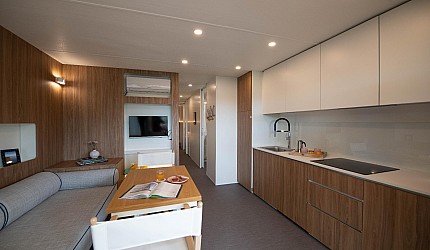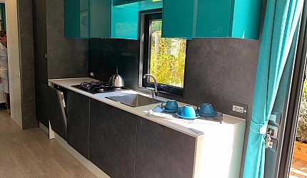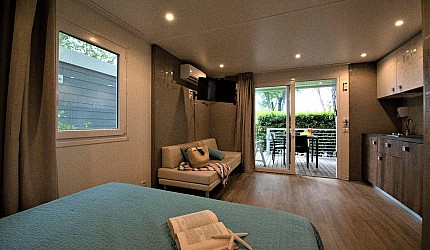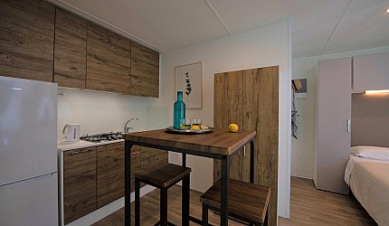 Open space caratterizzato da una camera spaziosa con letto matrimoniale, cucina lineare completamente attrezzata, divano letto, bagno di design e veranda integrata. Questa nuova e originale formula è una soluzione ideale per trascorrere una vacanza perfetta. Capienza massima di 3 persone.