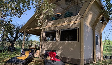 Per una vacanza all'insegna della natura trascorri la tua vacanza nella nostra tenda a due piani composta da una camera da letto,...