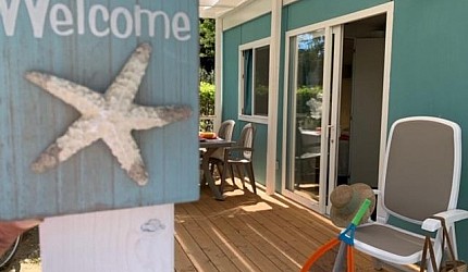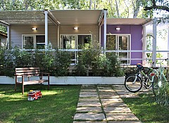 Nuovissimo alloggio con tutte le caratteristiche necessarie per trascorrere una vacanza indimenticabile in famiglia. Questo Bungalow è composto da: Soggiorno con divano letto e tavolo da pranzo. Cucina lineare completamente attrezzata. Due camere da letto: Camera matrimoniale e cameretta con 2 letti singoli. Lo spazio esterno con veranda, fa diventare questa soluzione ideale per rilassarsi immersi nella natura. Capienza massima di 5 persone.