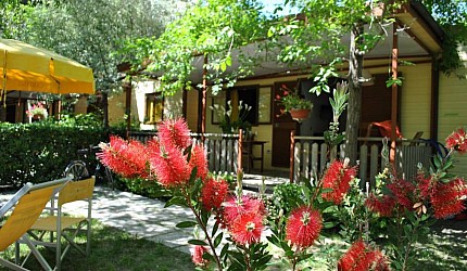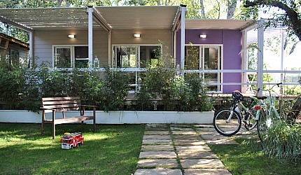 I nuovi Bungalows Modello "EXCLUSIVE" sono unità abitative di circa 40 mq immerse nel verde e con giardino privato di circa 100 mq. Due camere da letto matrimoniali, ciascuna dotata di bagno con doccia, veranda coperta e dotata di tavolo e sedie per pranzare e cenare all'aperto, TV al plasma e aria condizionata.