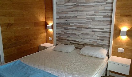 30 mq - camera matrimoniale, camera 2 letti, bagno, angolo cottura, soggiorno con divano letto e veranda.