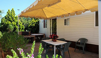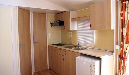 De bungalows (24 m2 + 24 m2 veranda) zijn als volgt samengesteld: kitchenette met gasfornuis, koelkast en servies, slaapkamer met tweepersoonsbed, slaapkamer met twee bedden, slaapbank voor anderhalve persoon, badkamer, airconditioning en veranda uitgerust met stenen barbecue, spoelbak voor servies, tafel en 5 stoelen. Inbegrepen: een schoonmaakset (bezem, borstel, dweil, emmer, stoffer en blik en teil). Extra's tegen betaling: beddengoed (lakens en kussenslopen, een wollen deken, een kussen) en badlinnen (1 gezichtshanddoek en 1 lichaamshanddoek)