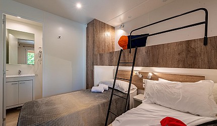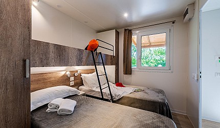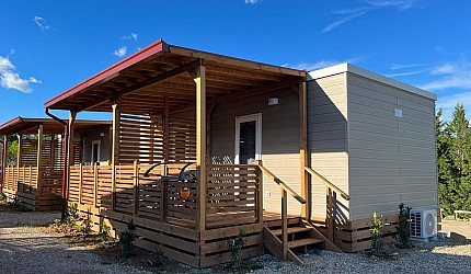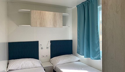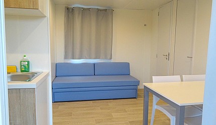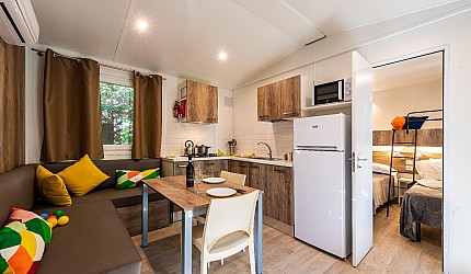 Mobile home per 4 persone composta da 1 camera matrimoniale, una camera con 2 letti singoli, soggiorno con angolo cottura, bagno con...