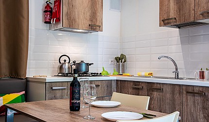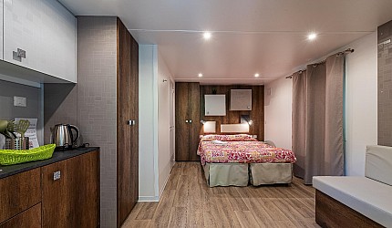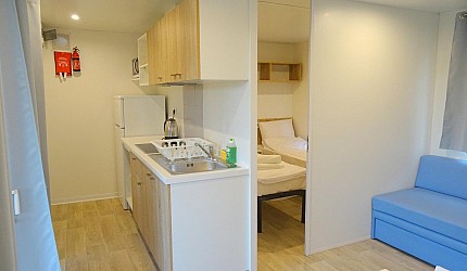 I maxi caravan Studio, sono composti da 1 camera da letto matrimoniale e 1 bagno con doccia, un piccolo soggiorno con angolo cottura...