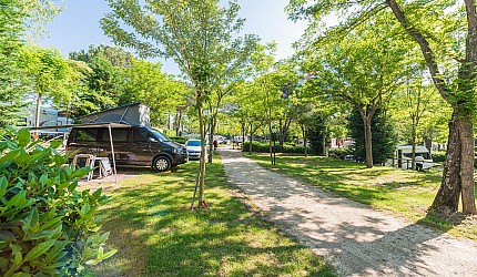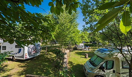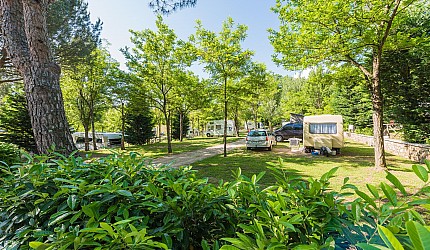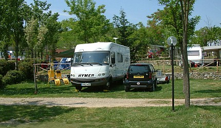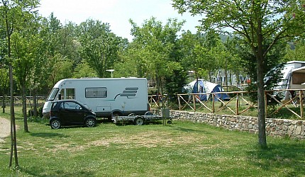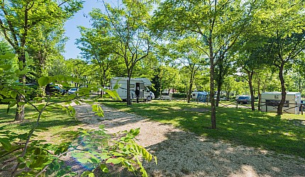 Ampie piazzole erbose ed ombreggiate, tutte provviste di elettricità (10 Ampere) con attacchi di tipo europeo. Nei pressi sono dislocate più fontane con acqua potabile e dei barbecue. Tutte le piazzole sono di facile accesso, anche per i mezzi più ingombranti. A richiesta sono disponibili dei bagni privati con biancheria. Esclusivamente per le famiglie con bambini, utilizzo gratuito della Baby Room.