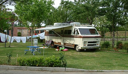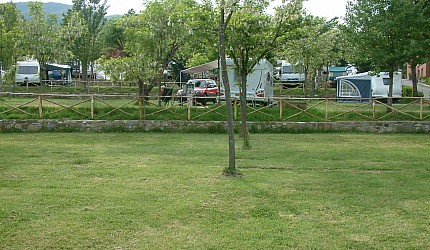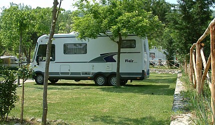 Piazzole erbose, ombreggiate, tutte provviste di elettricità con attacchi di tipo europeo. Nei pressi sono dislocate più fontane...