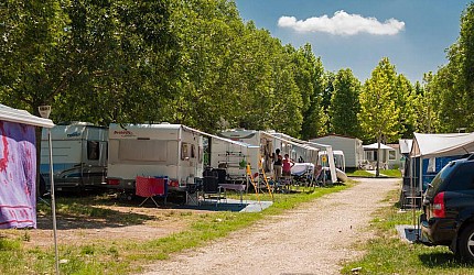 Sono di circa 7x9 o 6x10 metri, con la disponibilità di 6 ampere di corrente elettrica (è necessaria la presa di corrente europea) e la possibilità di carico e scarico acqua potabile tramite un pozzetto al cui rubinetto è possibile collegare il proprio tubo di scarico. Sono ideali per camper e roulotte di piccole e medie dimensioni.