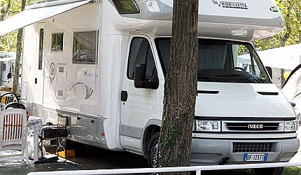 Casa mobile ideale per 6/7 persone, (8 mt. x 3.80 mt.), composta da due camere doppie ed una camera matrimoniale, entrambe con reti e materassi ortopedici gran comfort, un posto letto ricavabile dal divano per la settima persona, un bagno completo di wc, doccia e lavabo ed un bagno con wc e lavabo; asciugacapelli, dinette con frigorifero e freezer, microonde, cassaforte, tv, aria condizionata. Sono dotate di tutta la stoviglieria, cuscini e coperte. All'esterno, terrazza con tendalino, tavolo, sedie, due sdraio, e giardino con barbecue.