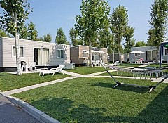 Casa mobile ideale per 6/7 persone, (8 mt. x 3.80 mt.), composta da due camere doppie ed una camera matrimoniale, entrambe con reti e materassi ortopedici gran comfort, un posto letto ricavabile dal divano per la settima persona, due bagni completi di wc, doccia e lavabo; asciugacapelli, dinette con frigorifero e freezer, microonde, cassaforte, tv, aria condizionata. Sono dotate di tutta la stoviglieria, cuscini e coperte. All'esterno, terrazza con tendalino, tavolo, sedie, due sdraio, e giardino con barbecue.