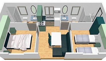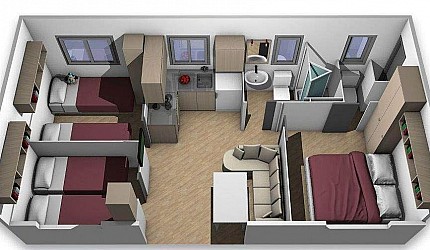 Casa mobile ideale per 4 persone, (8 mt. x 4 mt.). Un nuovo concetto di casa mobile per una vacanza in famiglia: stile moderno open...