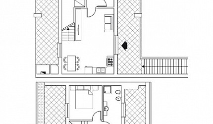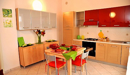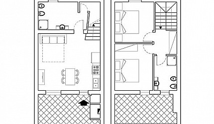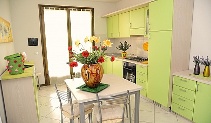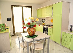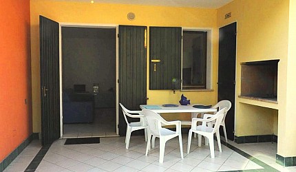 Ampio trilocale al piano terra composto da ingresso con soggiorno e angolo cottura, divano letto, due camere da letto e bagno. Provvisto di giardino privato attrezzato con barbecue in muratura.