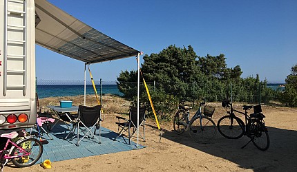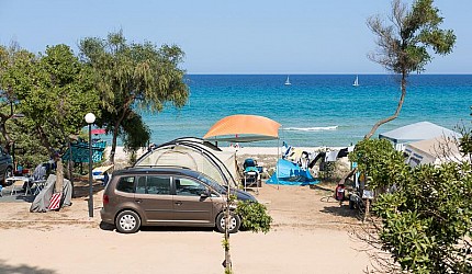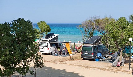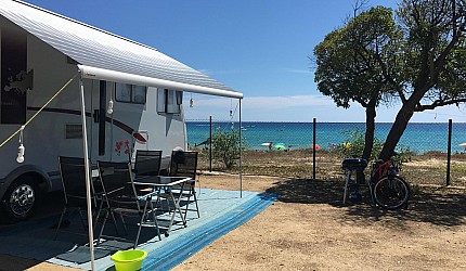 Le fleuron de notre camping c'est les 26 superbes emplacements en front de mer. Situés juste devant la plage, ils bénéficient d'une vue superbe sur la côte et le rocher « Scoglio di Peppino ».