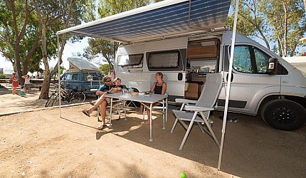 Les emplacements camping-cars, caravanes et grandes tentes sont tous délimités et situés au coeur de la verdure, à quelques mètres de la plage. Ils ont une surface de 80 à 120 m² et permettent également d'accueillir des camping-cars et des caravanes de grande taille.