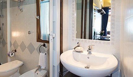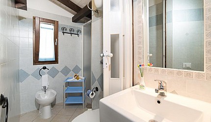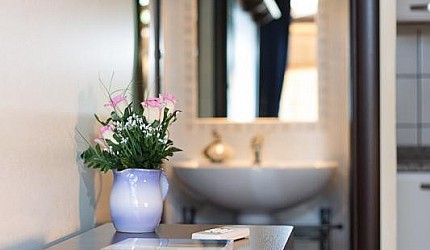 La salle de bain de ce type de logement dispose d'une douche, lavabo, et de wc de hauteur standard. Elle se prête aux besoins des clients présentant différents handicaps. En effectuant une demande spécifique à l'avance, nous fournissons des rehausseurs et un siège de douche.