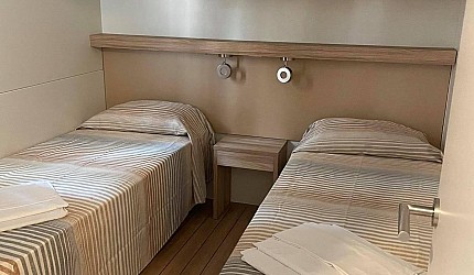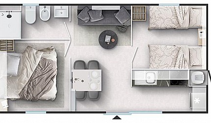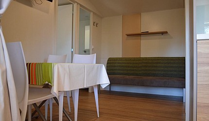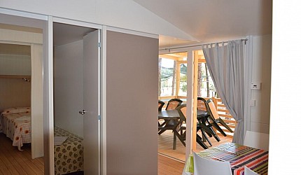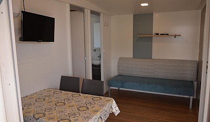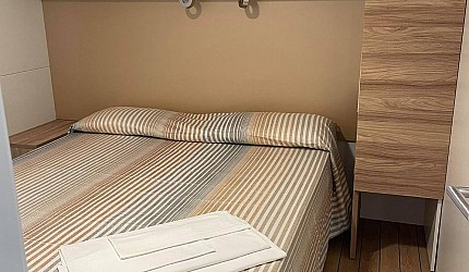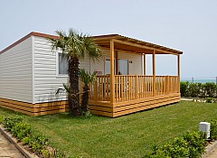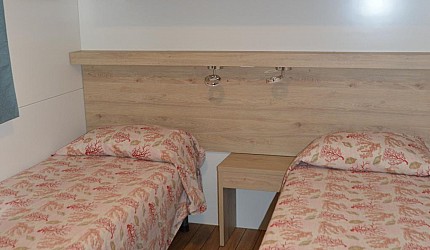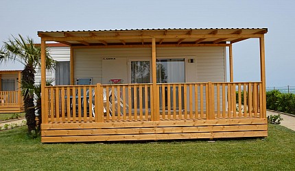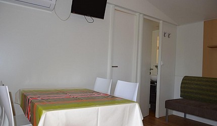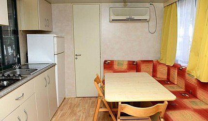 Three rooms 30 sqm + 15 sqm veranda veranda-double bedroom, small room with single beds, bathroom with a bidet and a shower, kitchenand services. Veranda, a table, outdoor lunch area, fridge with freezer, satellite TV, air-conditioning/ heating, kitchenware, housekeeping set, 2 loungers in the veranda.