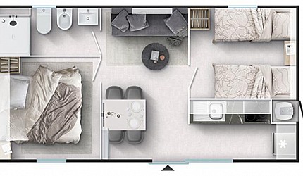 Three rooms 30 sqm + 15 sqm veranda veranda-double bedroom, small room with single beds, bathroom with a bidet and a shower,...