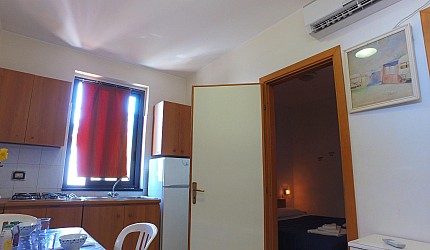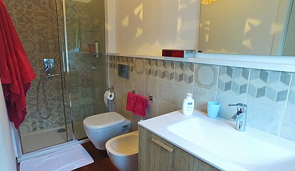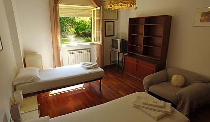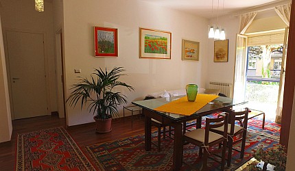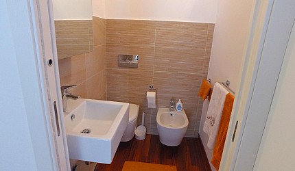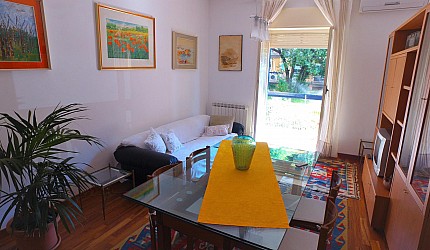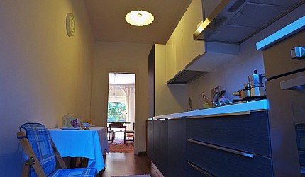 Renovated, spacious and bright apartment, well-equipped, right next to the campsite. It has wi-fi, air conditioning and heating. The kitchen is equipped with crockery and pots, oven, dishwasher and fridge; the large living room has a table, a comfortable sofa, TV and garden view. The bedrooms are spacious, with large closets and armchair (on request, also cot and baby chair). The bathrooms (with a shower) are modern and complete with towels, hairdryers, shampoo, etc. The laundry room has a washing machine, large washbasin, detergents and all useful tools.
